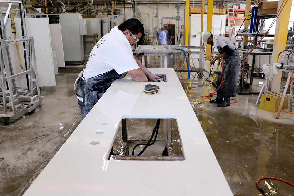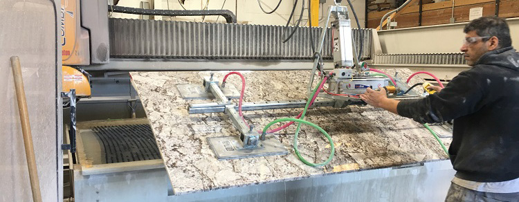 Our on-site equipment includes state-of-the-art CNC (Computer Numerical Control) Waterjet machines, multi-head edging machines and digitized templating systems that provide significant cost advantages over traditional fabrication methods.This streamlined CNC production process allows Express Contractors to provide you with the highest quality product in a short turnaround time.